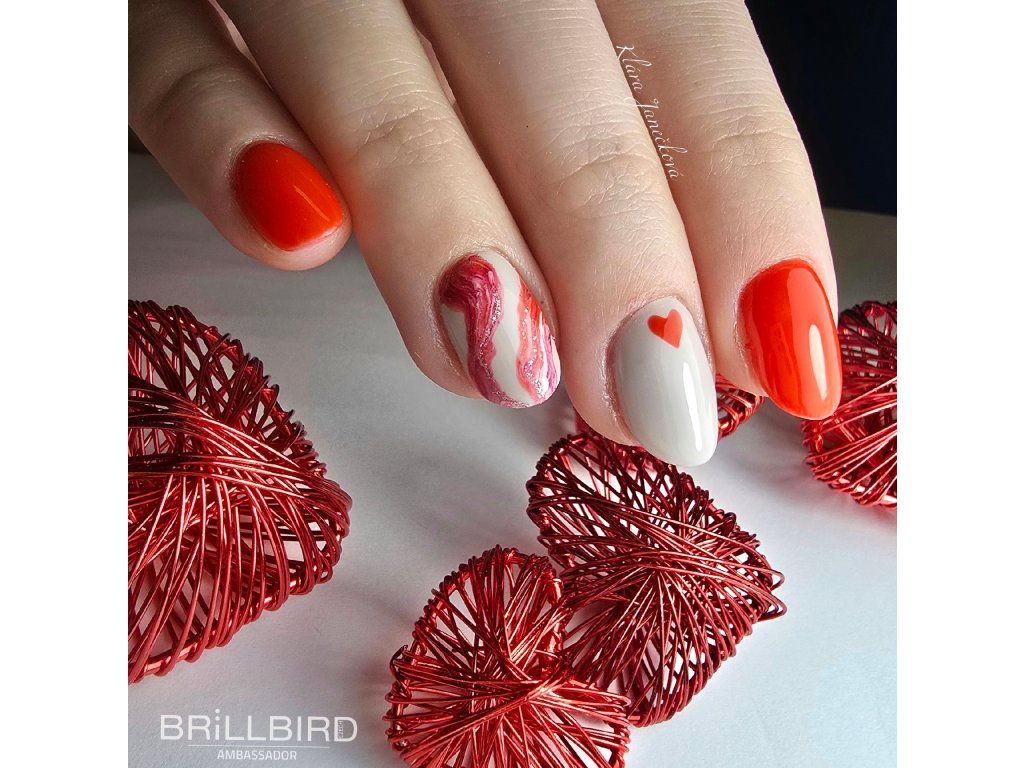 - Aplikujte 1-2 velmi tenké vrstvy barevného gel laku Hypnotic. V oblastech okolo kůžičky a valů Vám pomůže tenký štětec, např. 0 Long. Každou vrstvu vytvrďte v UV/LED lampě BrillBird min. 60-90 sec. Nestírejte výpotek.