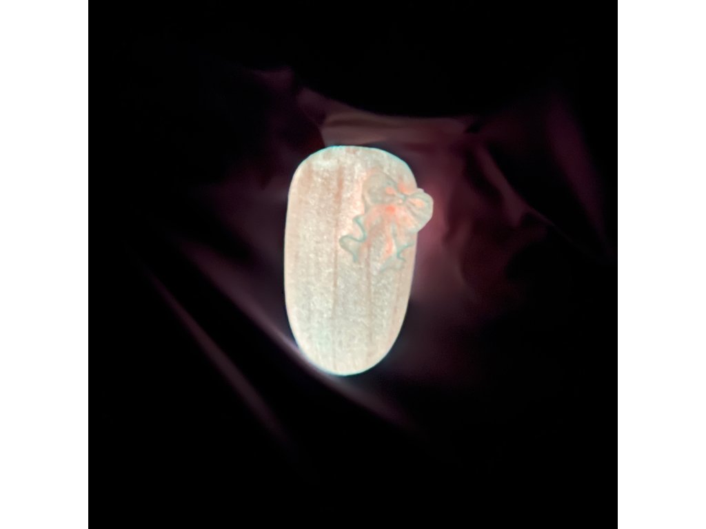 - Aplikujte 1-2 velmi tenké vrstvy barevného gel laku Hypnotic. V oblastech okolo kůžičky a valů Vám pomůže tenký štětec, např. 0 Long. Každou vrstvu vytvrďte v UV/LED lampě min. 60-90 sec. Nestírejte výpotek.