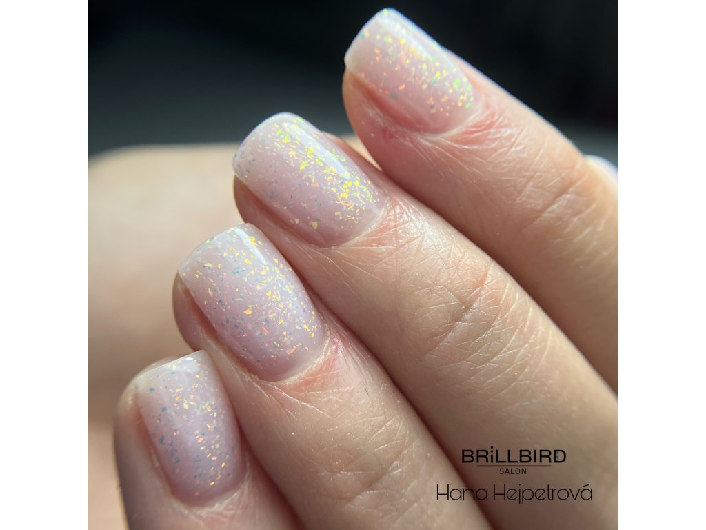 jemně růžový odstín s výrazně zářivými třpytkami